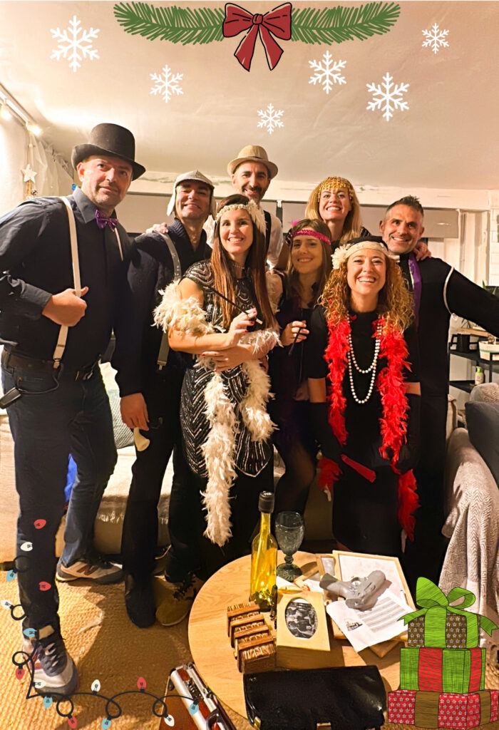 El resultado es un cluedo en vivo portátil que llega a casa listo para jugar. Está adaptado a cada grupo, funciona para diferentes edades y no requiere comprar nada extra. No hace falta decoración, ni atrezo, ni materiales adicionales: todo va dentro de la caja. Solo hay que abrirla y empezar a jugar. Es un room escape cluedo en vivo en casa pensado para compartir, participar todos y convertir una reunión navideña en una experiencia diferente.